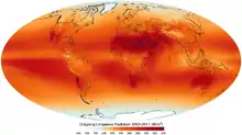 The received energy from the sun heats the earth surface. Heated earth surface is not that hot hence, it re-emits the energy. This returned energy is in the form of long-wave radiation. In this process, the longwave energy is absorbed by the atmosphere and the atmosphere is warmed up.