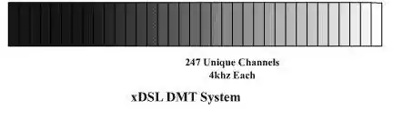 The DMT system is much more complex. It works by splitting the entire frequency range (bandwidth) into 247 channels of 4 kHz each and allocating a range of the lower channels, staring at around 8 kHz, as bidirectional to provide upstream and downstream channels. By splitting the bandwidth up in this way it effectively allows one connection to operate as if there were 247 modems connected to it, each of which operating at 4 kHz. The technology used in the DMT system is vastly more complex than that required for the CAP method as each of the 247 channels requires constant monitoring and assessment. If the system detects that a specific channel or range of channels are suffering from interference or a degradation in quality then the data stream must be automatically transferred to different channels. For the DMT system one need to place low pass filters into any telephone socket for making voice calls, because voice calls take place below the 4 kHz frequency and the filters simply block anything above this to prevent data signals interfering with the telephone call.