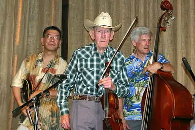 Kenny Baker is perhaps the most famed early bluegrass fiddler; he met Bill Monroe and cut a record with the Bluegrass Boys in 1957.[2] Kenny Baker served more years in Monroe's band than any other musician and was selected by Monroe to record the fiddle tunes passed down from Uncle Pen Vandiver. After leaving the Bluegrass Boys in 1984,Baker played with a group of friends, Bob Black, Alan Murphy, and Aleta Murphy