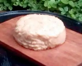 - Mix the ingredients. The substance should take on the consistency of peanut butter but have more the color of cheese than anything else.