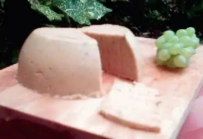 A vegan cheese that mainly consists of potato, oil and soy.