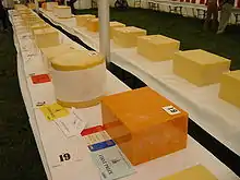 Cheddar cheese is a firm yellow cheese made from cow's milk. It is probably the most popular cheese in the United Kingdom and comes in a range of qualities from mass-produced sandwich filler and mousetrap bait to matured farmhouse cheese. Cheddar takes its name from a village in Somerset, England, but is now made throughout the world, particularly in English speaking areas.