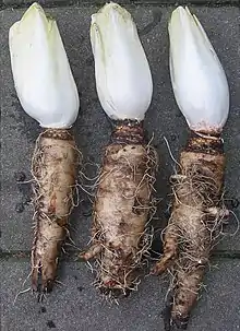 Chicory is a bushy, perennial herb with blue or lavender flowers. Common chicory is also known as blue sailors, succory, and coffeeweed. The plant is cultivated and used as endive under the common names radicchio, Belgian endive, French endive, or witloof. It is grown in complete darkness to keep new leaves tender and pale.