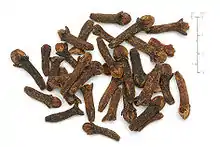 Cloves are the aromatic dried buds of a tree native to Indonesia, used as a spice in virtually all the world's cuisine. They can be used in cooking either whole or in a ground form, but they are extremely strong so they are used sparingly.