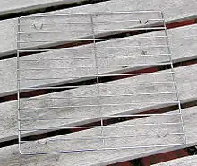 A cooling rack (also known simply as a wire rack) is used to allow air to circulate freely to cool baked goods, and to prevent them getting soggy from condensation.