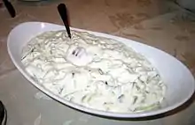Armenian cuisine is the cuisine of Armenia or of the Armenians in the Armenian Diaspora. Given the geography and history of Armenia, Armenian cuisine is a representative of the cuisine of the Mediterranean and the Caucasus, with strong influences from Eastern Europe, the Middle East, and, to a lesser extent, from the Balkans. It is also to note that Armenians themselves have greatly influenced the culinary traditions of nearby countries or cities, such as Aleppo.[1] The preparation of a large number of meat, fish and vegetable dishes in the Armenian kitchen requires stuffing, frothing and pureeing.[2]