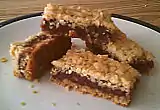 Date bars have crumbly upper and lower surfaces with a date filling in the middle. Also see the Date Squares recipe.