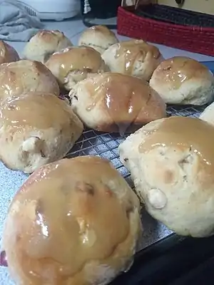 - Divide dough into twelve pieces and shape into buns. Mark a deep cross on the top of each bun.