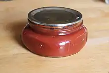 Ketchup, also known as catsup, is a type of sauce containing spices and a large amount of acid (vinegar or lactic acid), typically tomato-based. Some recipes, particularly those from Australia, may use the ambiguous term tomato sauce to mean tomato ketchup.