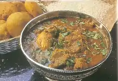 Kombdi Vade is a Malvani dish, which is quite popular in Maharashtra. The dish consists of the traditional Malvani chicken curry (including chicken pieces with bones), vade (also known as puri, which is a fluffy, fried bread of wheat and nachni flour), onion, lemon and solkadhi (a drink made from coconut milk).