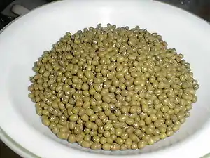 The Mung bean, also moong, is a small green legume particularly associated with Asian cuisine.