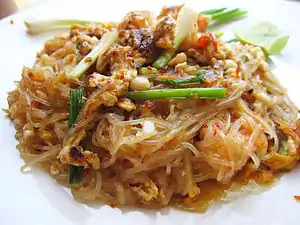 - Serve on a large plate or bowl. Garnish with chopped peanuts and optionally, chopped cilantro or coriander and a wedge of lime.