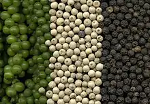 This article pertains to black, green and white pepper berries (Piper nigrum), also known as peppercorns when dried. Other plants/ingredients commonly known as pepper include: