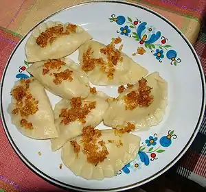 Pierogi are Polish dumplings that are typically filled with potatoes, cheese, meat, sauerkraut and mushrooms or wild fruits (strawberries, blueberries, etc.).