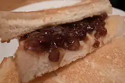 Red bean paste (in simplified Chinese: 红豆沙, in traditional Chinese: 紅豆沙, Pinyin: hóngdòushā, meaning "red bean sand", due to its texture) is a sweet paste used for many things in Chinese, Japanese and Korean cuisine. It is made from mashed adzuki beans (known as red beans in Chinese), mixed with sugar.