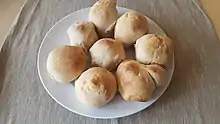 3. Turn dough out onto the freshly floured board and shape into 9 balls. Place dough balls into a buttered and floured 9 inch square pan. Let them sit, covered for another 15 minutes to rise again. Preheat the oven to 425° F (220 C).