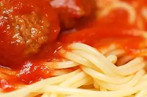 Most food historians agree that the union of spaghetti with meatballs is an American culinary invention with Italian roots. In the vast majority of cases, Old World-Italian cuisine calls for mixing heavy meat sauces with fettuccine and tagliatelle but not spaghetti.[1]
