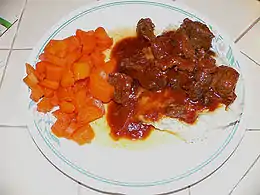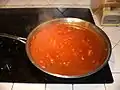 - Combine all the ingredients except the meat in the skillet. Simmer for 10 minutes