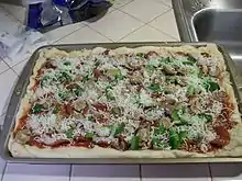 Pizza with all the toppings added, ready to cook