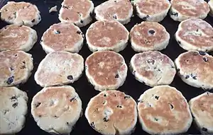 Welsh cakes (Welsh: Picau ar y maen) are a popular cake in Wales that are similar to scones and Cornish Heavy cakes.