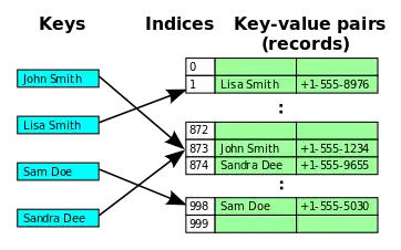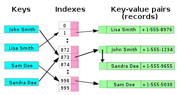 Hash tables may be used as in-memory data structures. Hash tables may also be adopted for use with persistent data structures; database indexes commonly use disk-based data structures based on hash tables.