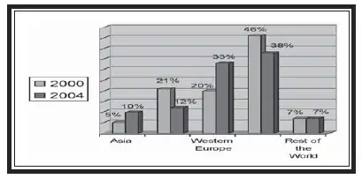 Figure 1: Worldwide E-Commerce Revenue, 2000 and 2004 (as a % share of each country/region)