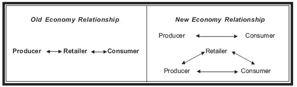 E-commerce transforms old economy relationships (vertical/linear relationships) to new economy relationships characterized by end-to-end relationship management solutions (integrated or extended relationships).