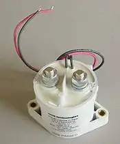 Contactors (robust relays) make the connection between the battery pack and the controller and motor. They are powered by a 12 volt DC source provided by a "run" circuit and provide disconnection when the vehicle is not in use. These contactors are normally opened by a spring and are drawn closed by a solenoid operated by the vehicle's twelve volt service battery through wiring called the run circuit.