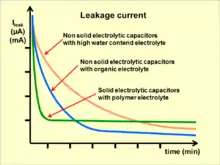 - ↑ AVX, ANALYSIS OF SOLID TANTALUM CAPACITOR LEAKAGE CURRENT