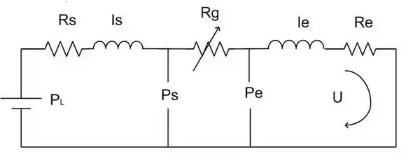 In the image below, the lumped element flow circuit for the vocal tract airway is shown. The input impedance to the vocal tracts can be shown by resistive and inertive lumped elements.[1] According to the shown circuit we have: