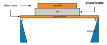 • - resonant frequency depends on the wave velocity (v) and the piezoelectric material thickness,