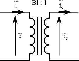 Figure 3: A transformer modeling transduction from the electrical impedance to mechanical mobility analogy