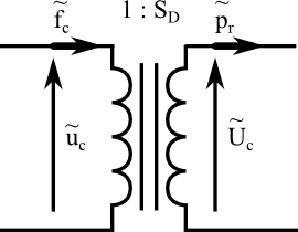 Figure 5: A transformer modeling the transduction from mechanical mobility to acoustical mobility analogy performed by a loudspeaker's diaphragm