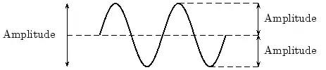 In physics we try to be as quantitative as possible. If we look very carefully we notice that the height of the peaks above the level of the still water is the same as the depth of the troughs below the level of the still water. Waves are repetitions of physical quantity in a periodic manner, carrying energy in the process. The water waves, for example, can be visualized to repeat any of the physical quantities like "peaks", "troughs", "potential energy" or "kinetic energy". Even, we can visualize water waves as the motion of disturbance (energy). It is the energy aspect of waves that is central to the understanding of different types of waves, many of which are not visible. Looking closely at the water wave, we can recognize that crests and troughs basically represent of extreme potential and kinetic energies in addition to representing rise and fall of water from the still level. At the peak, energy is only potential, whereas energy is only kinetic at the trough. Similarly, propagation of electromagnetic wave is associated with repetitions of magnetic and electric field in space with certain periodicity. As existence of electrical or magnetic fields does not require any medium, electromagnetic waves can move even in the absence of any medium. Characteristics of Waves: AmplitudeWe use symbols agreed upon by convention to label the characteristic quantities of the waves. The characteristic height of a peak and depth of a trough is called the amplitude of the wave. The vertical distance between the bottom of the trough and the top of the peak is twice the amplitude. To put it simply, the amplitude is the distance of the wave from the medium, to the crest or trough