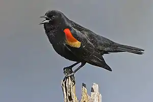 Despite the similar names, the Red-winged Blackbird is not related to the European Redwing or the Old World Blackbirdthrushes (Turdidae).