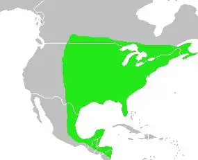 Their breeding habitat is open country across southern Canada and the eastern-central United States. They nest in a cavity in a dead tree or a dead part of a tree.