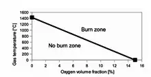 The default values for the limiting oxygen index and the critical flame temperature are 15% (volume fraction) and 1427 °C, respectively as shown in Figure media:FlameExtinctionCriteria.png.