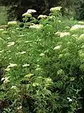 The Adoxaceae (moschatel or muskroot family) in New York contains about 14 species of Viburnum, three species of Sambucus (elderberries), and the endangered Adoxa moschatellina (muskroot). The Adoxaceae members are often included in the Caprifoliaceae (Honeysuckle Family), and have the characteristic opposite-leaf pattern of that family.