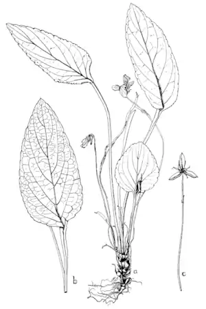 | Viola subsect. Adnatae | Stemless white violets | N.Y. Status | Images | Distribution | NY NPT |
