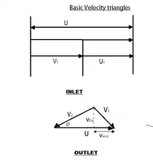 Velocity triangles at inlet and outet