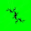 - has external rays at 1/7, 2/7 and at 4/7 which rather than just touching down directly, form an infinite logarithmic spiral around the point before reaching it.