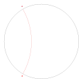 - hyperbolic way : points are on unit circle and here chord joining 2 points z1 and z2 on unit circle means that these points are landing points of the same ray. It does not mean that . Chord is drawn using arc ( part of orthogonal circle ).