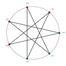 Orbit of rational angle 3/7 ( and position in subintervals):