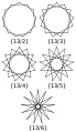 s = 0 i = 0 internal angle = 13 / 34 ea = 0 / 17179869183 ; m = 0 s = 1 i = 1 internal angle = 26 / 34 ea = 4294967296 / 17179869183 ; m = 4294967296 s = 0 i = 2 internal angle = 5 / 34 ea = 4294967296 / 17179869183 ; m = 0 s = 0 i = 3 internal angle = 18 / 34 ea = 4294967296 / 17179869183 ; m = 0 s = 1 i = 4 internal angle = 31 / 34 ea = 4831838208 / 17179869183 ; m = 536870912 s = 0 i = 5 internal angle = 10 / 34 ea = 4831838208 / 17179869183 ; m = 0 s = 1 i = 6 internal angle = 23 / 34 ea = 4966055936 / 17179869183 ; m = 134217728 s = 0 i = 7 internal angle = 2 / 34 ea = 4966055936 / 17179869183 ; m = 0 s = 0 i = 8 internal angle = 15 / 34 ea = 4966055936 / 17179869183 ; m = 0 s = 1 i = 9 internal angle = 28 / 34 ea = 4982833152 / 17179869183 ; m = 16777216 s = 0 i = 10 internal angle = 7 / 34 ea = 4982833152 / 17179869183 ; m = 0 s = 0 i = 11 internal angle = 20 / 34 ea = 4982833152 / 17179869183 ; m = 0 s = 1 i = 12 internal angle = 33 / 34 ea = 4984930304 / 17179869183 ; m = 2097152 s = 0 i = 13 internal angle = 12 / 34 ea = 4984930304 / 17179869183 ; m = 0 s = 1 i = 14 internal angle = 25 / 34 ea = 4985454592 / 17179869183 ; m = 524288 s = 0 i = 15 internal angle = 4 / 34 ea = 4985454592 / 17179869183 ; m = 0 s = 0 i = 16 internal angle = 17 / 34 ea = 4985454592 / 17179869183 ; m = 0 s = 1 i = 17 internal angle = 30 / 34 ea = 4985520128 / 17179869183 ; m = 65536 s = 0 i = 18 internal angle = 9 / 34 ea = 4985520128 / 17179869183 ; m = 0 s = 1 i = 19 internal angle = 22 / 34 ea = 4985536512 / 17179869183 ; m = 16384 s = 0 i = 20 internal angle = 1 / 34 ea = 4985536512 / 17179869183 ; m = 0 s = 0 i = 21 internal angle = 14 / 34 ea = 4985536512 / 17179869183 ; m = 0 s = 1 i = 22 internal angle = 27 / 34 ea = 4985538560 / 17179869183 ; m = 2048 s = 0 i = 23 internal angle = 6 / 34 ea = 4985538560 / 17179869183 ; m = 0 s = 0 i = 24 internal angle = 19 / 34 ea = 4985538560 / 17179869183 ; m = 0 s = 1 i = 25 internal angle = 32 / 34 ea = 4985538816 / 17179869183 ; m = 256 s = 0 i = 26 internal angle = 11 / 34 ea = 4985538816 / 17179869183 ; m = 0 s = 1 i = 27 internal angle = 24 / 34 ea = 4985538880 / 17179869183 ; m = 64 s = 0 i = 28 internal angle = 3 / 34 ea = 4985538880 / 17179869183 ; m = 0 s = 0 i = 29 internal angle = 16 / 34 ea = 4985538880 / 17179869183 ; m = 0 s = 1 i = 30 internal angle = 29 / 34 ea = 4985538888 / 17179869183 ; m = 8 s = 0 i = 31 internal angle = 8 / 34 ea = 4985538888 / 17179869183 ; m = 0 s = 0 i = 32 internal angle = 21 / 34 ea = 4985538888 / 17179869183 ; m = 0 s = 1 i = 33 internal angle = 34 / 34 ea = 4985538889 / 17179869183 ; m = 1 internal angle = 13/34 period = denominator of internal angle = 34 external angle as a decimal fraction = 4985538889/17179869183 = 4985538889 /( 2^34 - 1) external angle as a binary rational (string) : 100101001001010010100100101001001/1111111111111111111111111111111111 external angle as a binary floating number in exponential form =0.1001010010010100101001001010010010100101001001010010100100101001*2^-1 external angle as a binary floating number in periodic form =0.(0100101001001010010100100101001)
