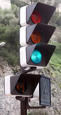 Traffic Signals are one of the more familiar types of intersection control. Using either a fixed or adaptive schedule, traffic signals allow certain parts of the intersection to move while forcing other parts to wait, delivering instructions to drivers through a set of colorful lights (generally, of the standard red-yellow (amber)-green format). Some purposes of traffic signals are to (1) improve overall safety, (2) decrease average travel time through an intersection, and (3) equalize the quality of services for all or most traffic streams. Traffic signals provide orderly movement of intersection traffic, have the ability to be flexible for changes in traffic flow, and can assign priority treatment to certain movements or vehicles, such as emergency services. However, they may increase delay during the off-peak period and increase the probability of certain accidents, such as rear-end collisions. Additionally, when improperly configured, driver irritation can become an issue. Traffic signals are generally a well-accepted form of traffic control for busy intersections and continue to be deployed. Other intersection control strategies include signs (stop and yield) and roundabouts. Intersections with high volumes may be grade separated.