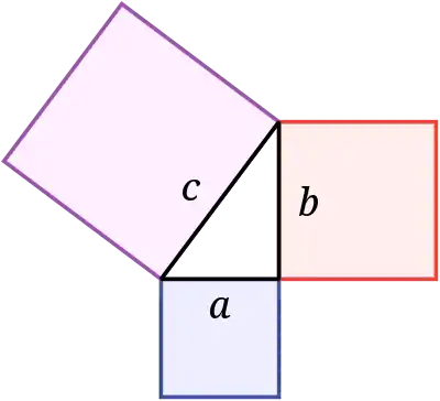 c being the hypotenuse and longest side, while a and b being the two other sides.