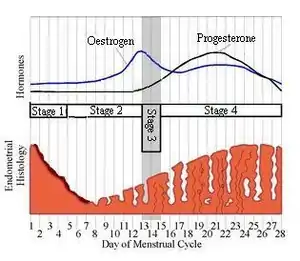 Stage 2. Days 4-14. The uterine lining grows back. This is due to high levels of oestrogen.