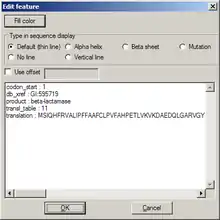 • Use offset sets the numbering for the first amino acid of the feature; useful if the feature marks a part of a protein