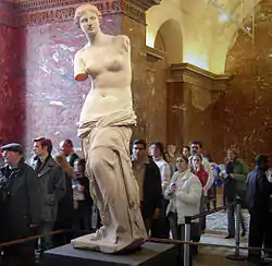 Consider the lighting of the sculpture in the image to the left. There is natural light coming through the windows. Some of this light bounces off the floor, walls and visitors before reaching the sculpture. Additionally, there are artificial light sources, and their light is also shining directly and indirectly onto the sculpture. How many directional lights and point lights would be needed to simulate this kind of complex lighting environment convincingly? At least more than a handful (probably more than a dozen) and therefore the performance of the lighting computations is challenging.