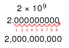 ![]() These are the steps in converting a large number expressed in scientific notation into standard notation. Write the mantissa and find the location of the decimal point, and shift the decimal point by the number indicated in the power. Here, the power is 9, so the decimal is moved nine digits to the right. ![]() These are the steps in converting a small number expressed in scientific notation into standard notation. The steps for converting a small number are the same as for a large number, but the decimal point should be shifted to the left instead of to the right. |